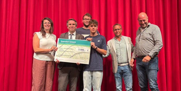 Die Stiftung Universitätsmedizin Aachen nahm den symbolischen Spendenscheck am letzten Schultag vor den Sommerferien entgegen. Die Mittel fließen gezielt in Projekte zur Verbesserung der Versorgung junger Patientinnen und Patienten.